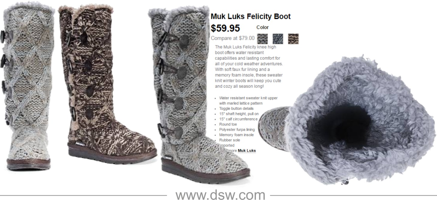 Strickoptik an den Beinen für ein flottes und bezauberndes Aussehen – besonders wenn diese Stiefel unter Röcken getragen werden.
